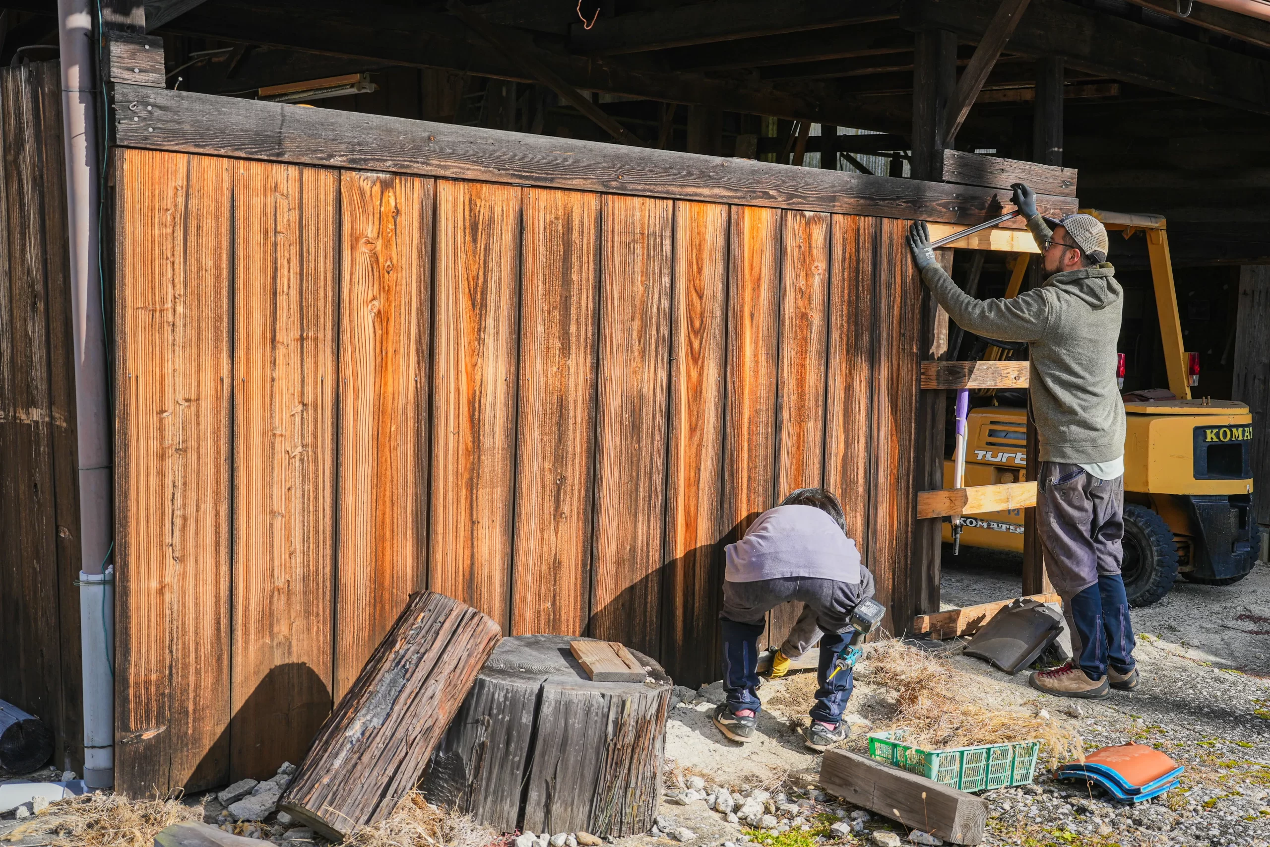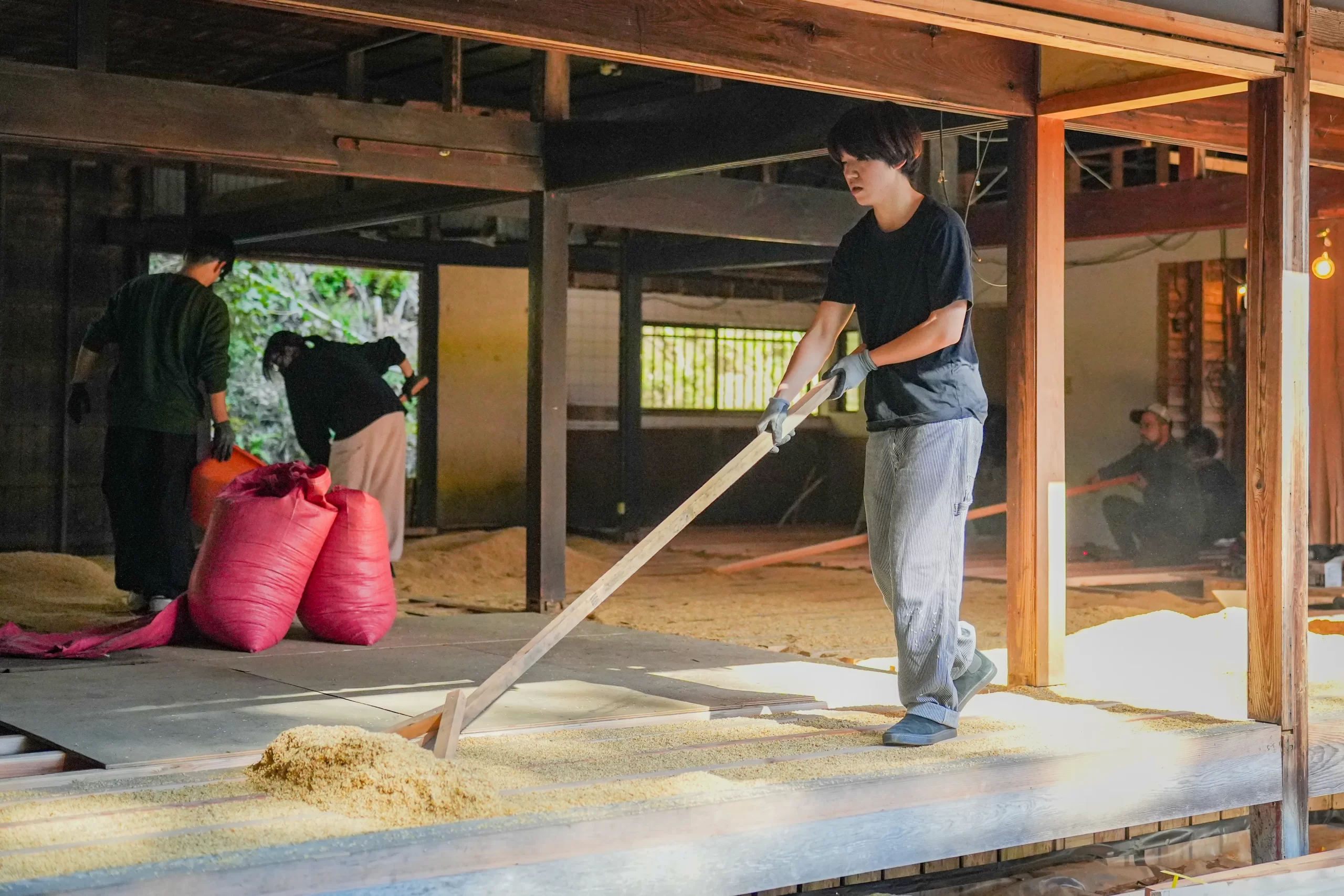 季節ごとの作物を育てながら、農的な暮らしを体験できる場をつくります。現在、裏山の落葉を活用した腐葉土づくりを進めています。