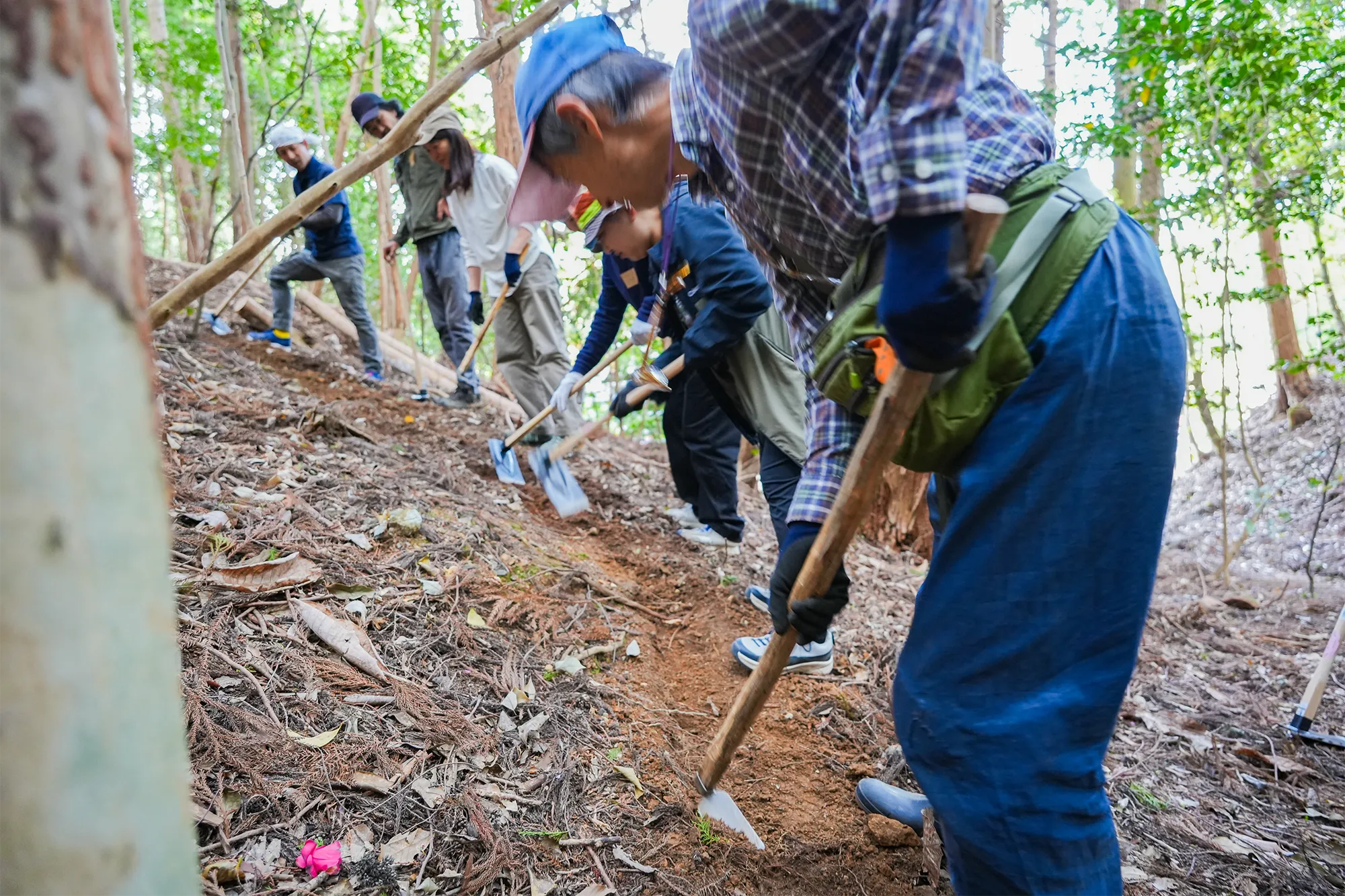 約5,000㎡の里山環境を活用し、自然をゆったりと楽しめる散策路づくりを地域内外の人とともに参加型で進めています。